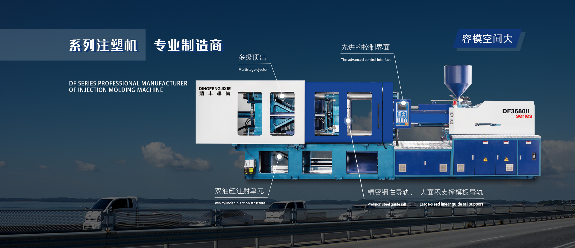寧波鼎豐塑料機械有限公司位于寧波國家高新區,是專業制造DFK、DFJ、DFH等數十種系列精密注塑成型機的高新技術企業。產品質量達到同行業之首。 鼎豐公司積聚多年行業精髓,不斷創新,為確保DF系列產品的高品質,高精密,高重復精度,在設計上公司采用先進的Solldworks電腦輔助設計,以3D實體模型進行數值設計,并以有限元素分析。(FEA)進行結構最佳化設計。確保DF系列的產品結構之剛性及強度。整機采用國際知名品牌的液壓和電控元件,使DF系列產品贏得海內外眾多客戶的認可和信賴。